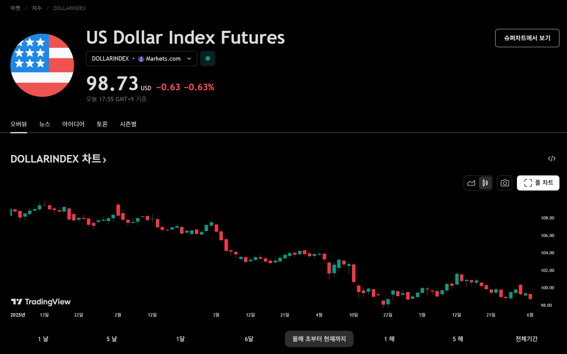 달러 인덱스(DXY)는 미국 달러의 가치를 측정하는 핵심 지표로, 6개 주요 통화에 대한 달러의 상대적 가치를 보여줍니다