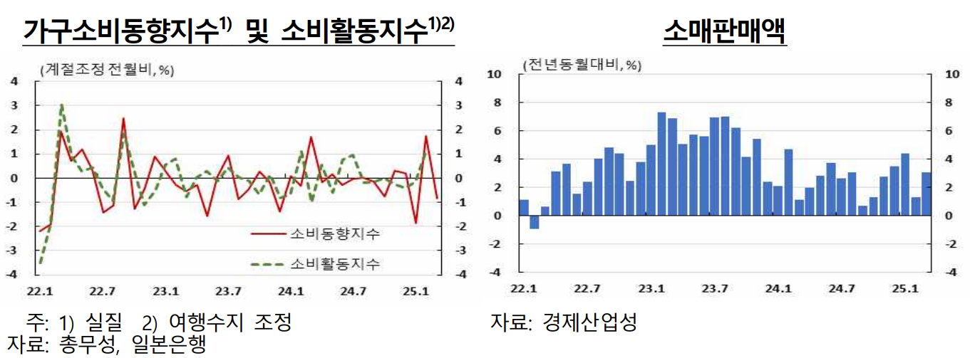 2025년 3월 기준 일본 경제는 복합적인 신호를 보내고 있습니다. 민간소비는 전월 대비 0.8% 감소했고, 설비투자는 지표별로 혼조 양상을 나타내고 있습니다