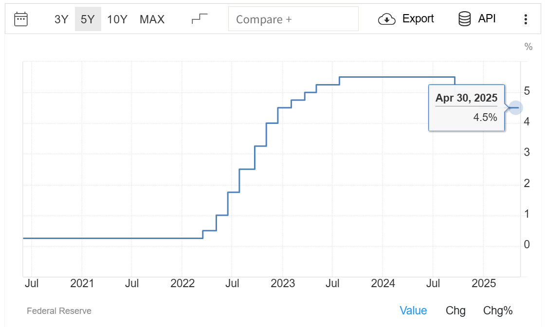 미국 연방준비제도는 2025년 6월부터 금리 인하에 나서 내년 1월까지 기준금리를 2.75로 낮출것으로 전망됩니다
