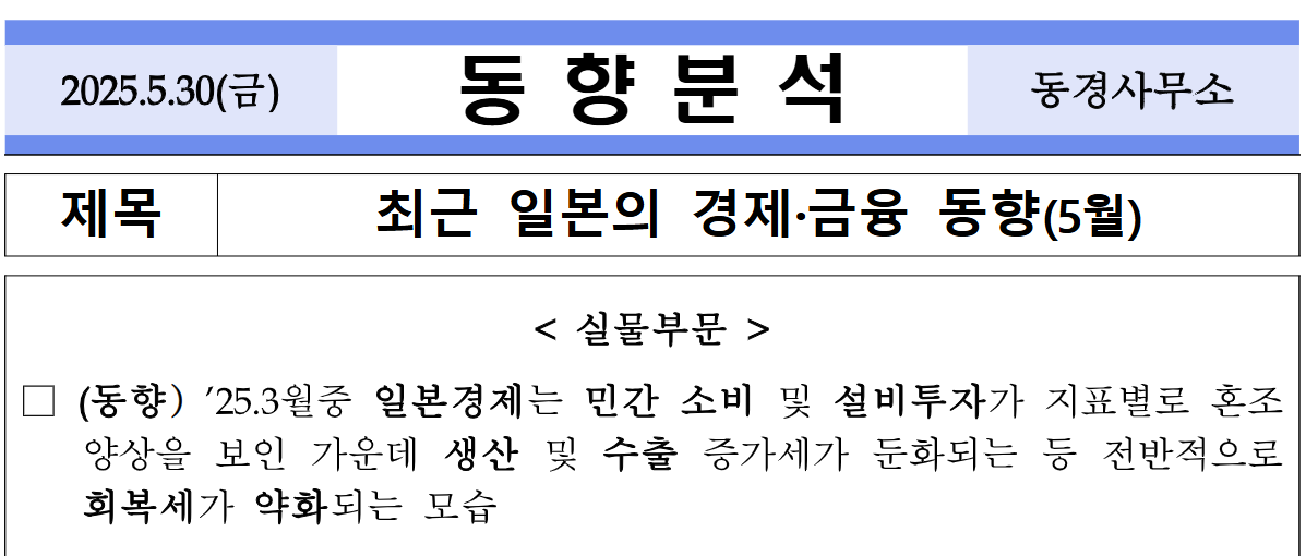 일본 경제의 현재 상황 - 회복세 속 불안 요소들