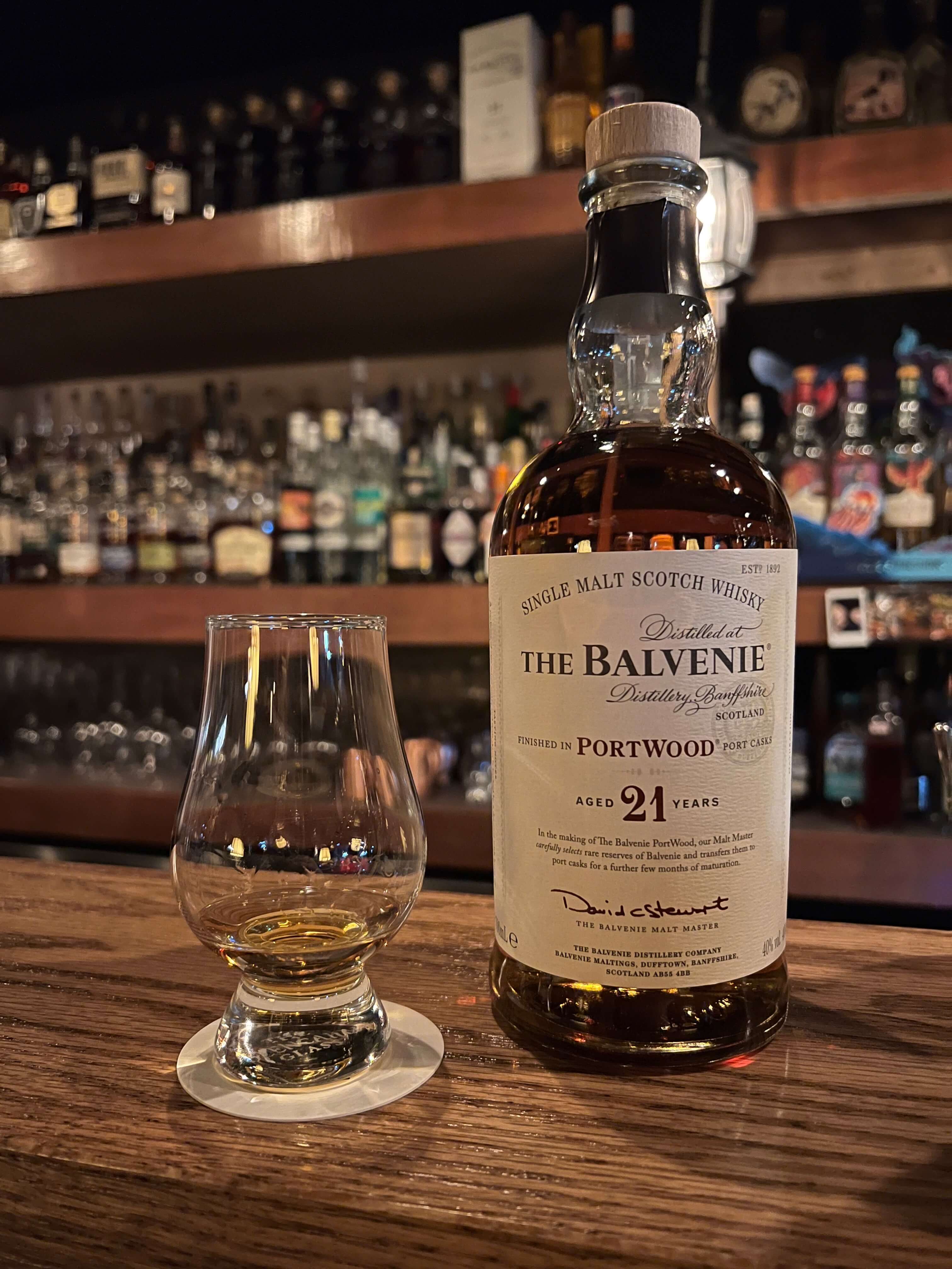 포트우드 21 싱글 몰트 위스키를 만들기 위해 희귀한 Balvenie의 결합을 고급 포트 와인을 담았던 포트 캐스크 또는 파이프로 옮깁니다. 여기에서 Balvenie Malt Master David C. Stewart MBE가 정기적으로 샘플링하여 포트 캐스크에서 적절한 양의 특성을 전달하여 원래 특성을 유지하면서 싱글 몰트를 향상 및 개발하였습니다. 많은 사람들이 David의 가장 훌륭한 작품으로 간주하는 이 위스키는 그의 가장 자랑스러운 업적 중 하나이며 1996년 출시 이후 많은 사람들이 탐내는 업계 상을 수상했습니다. The Balvenie PortWood Aged 21 Years는 냉각 여과를 거치지 않고 47.6%의 높은 농도로 병입됩니다.
