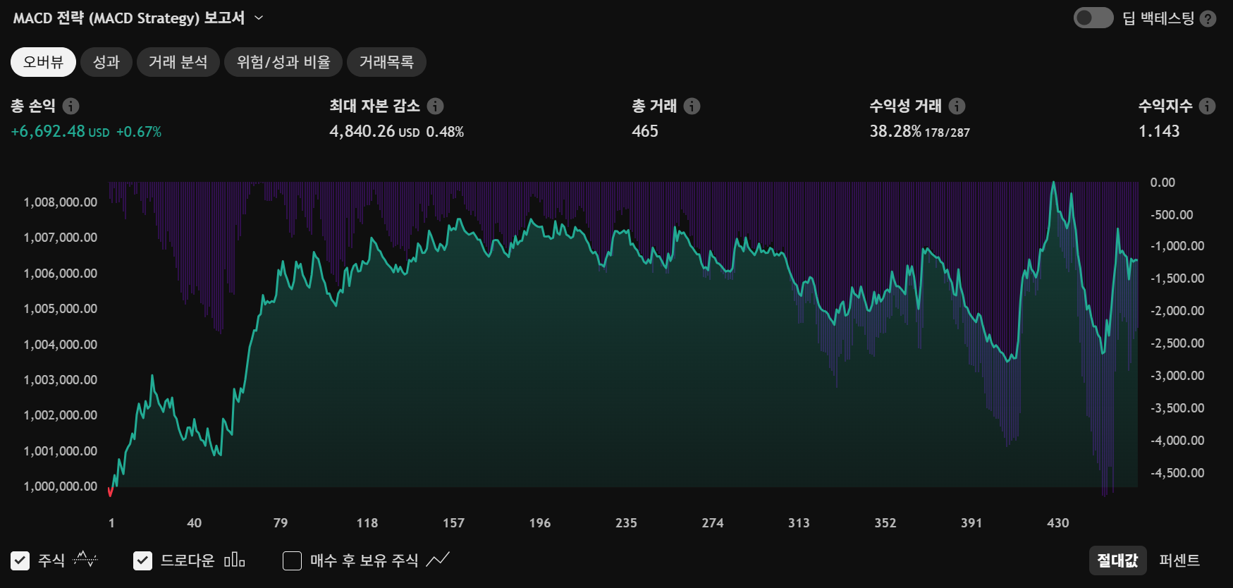 이 글에서는 MACD의 기본 원리부터 트레이딩뷰 Pine Script를 활용한 실전 전략의 백테스팅 결과까지 알아보겠습니다