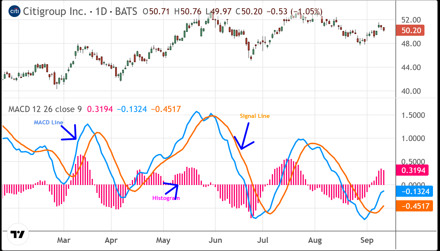 MACD 지표는 세 가지 핵심 구성 요소로 이루어져 있습니다