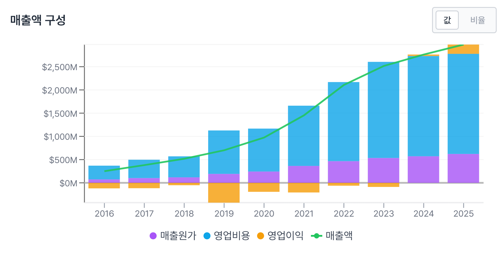 둘째, 안정적인 수익 모델과 견고한 재무 성과입니다. 구독 수익이 전체 매출의 97.7%를 차지하는 예측 가능한 수익 구조를 보유하고 있으며, 높은 매출총이익률(79.39%)과 순이익률(36.50%)을 유지하고 있습니다