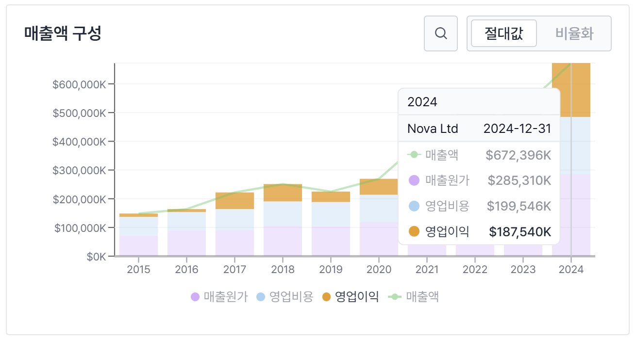 Nova Ltd의 2024년 사업 부문별 매출 비중과 성장률