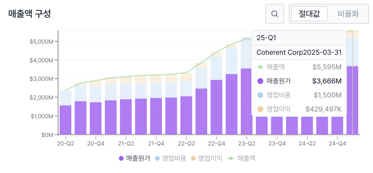 Coherent Corp 분기별 매출 및 수익성 분석 (2023-2025)