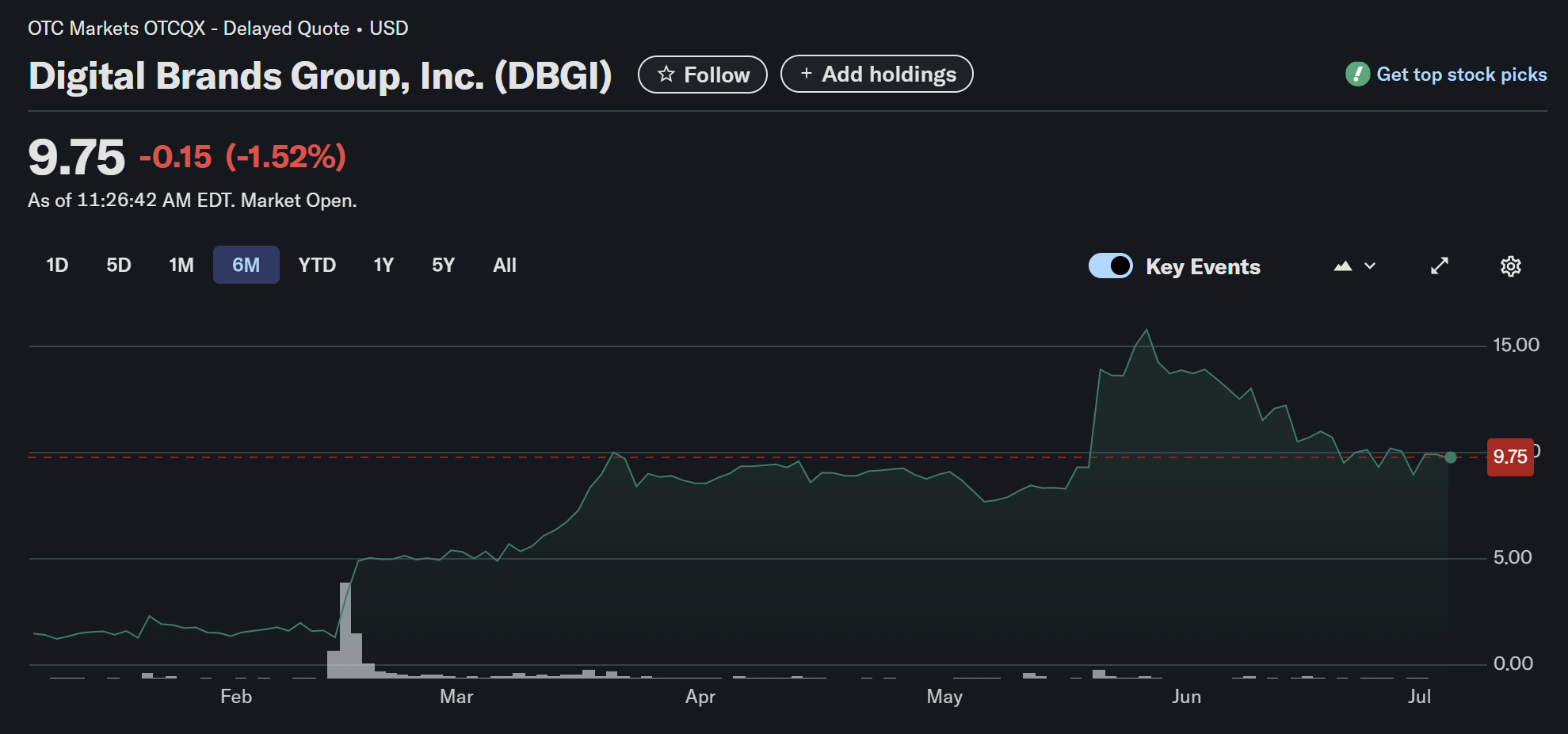 • Market cap: ~$40 M—micro-cap territory[functions:finance_price_history DBGI].