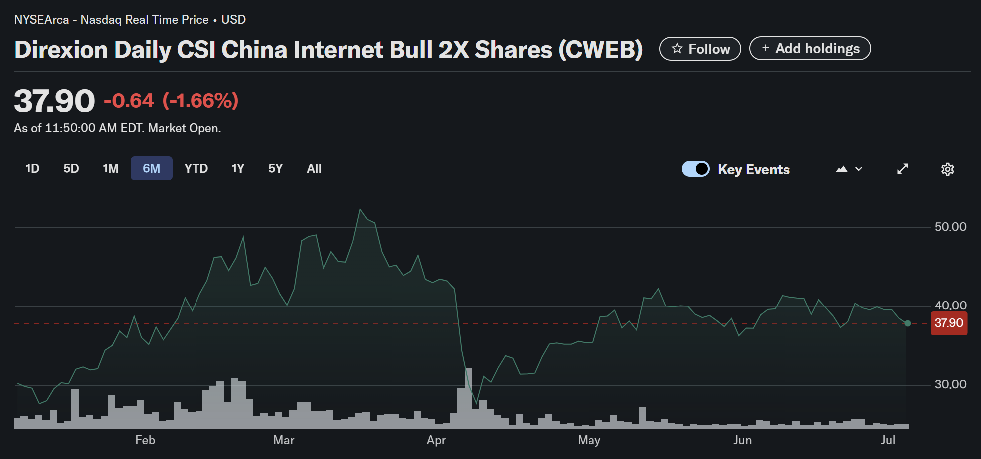 CWEB delivers 2× the daily return of the CSI Overseas China Internet Index, a basket dominated by Alibaba, Meituan, JD.com, and Pinduoduo. Because the product uses swaps and financing to obtain leverage, returns compound in a non-linear fashion—great in a sustained rally, painful in a choppy downturn