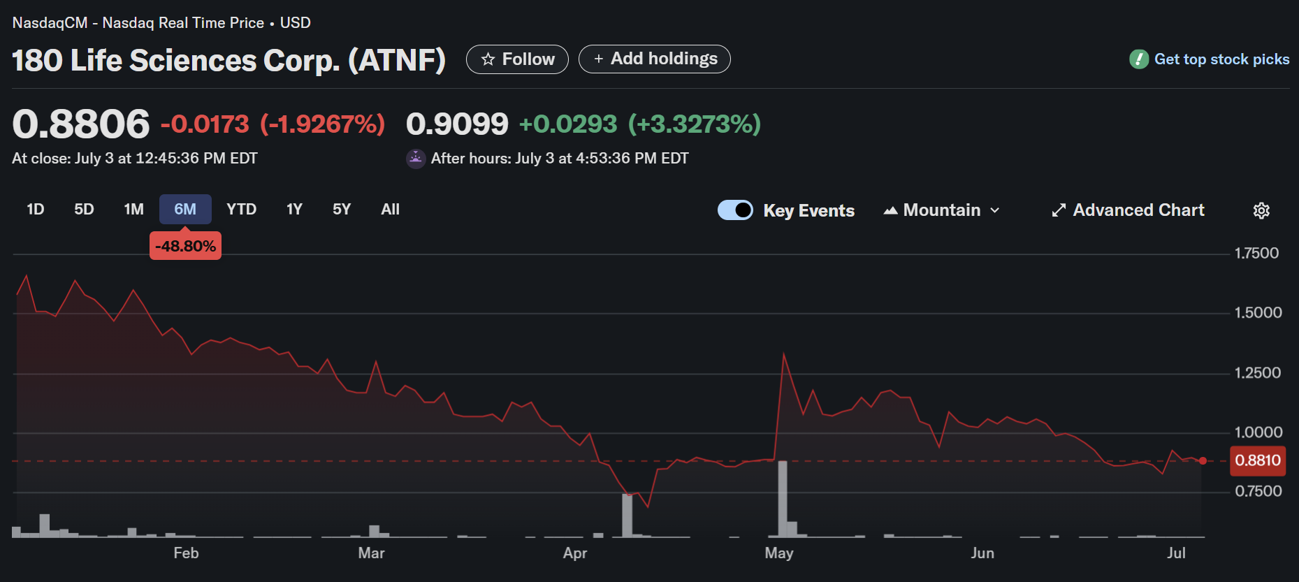 180 Life Sciences Corp (NASDAQ: ATNF) represents one of the most dramatic business pivots in recent memory. Trading at just $0.90 per share with a tiny market capitalization of $5 million, ATNF has transformed from a clinical-stage biotechnology company into an iGaming (online gambling) focused enterprise^1^3.