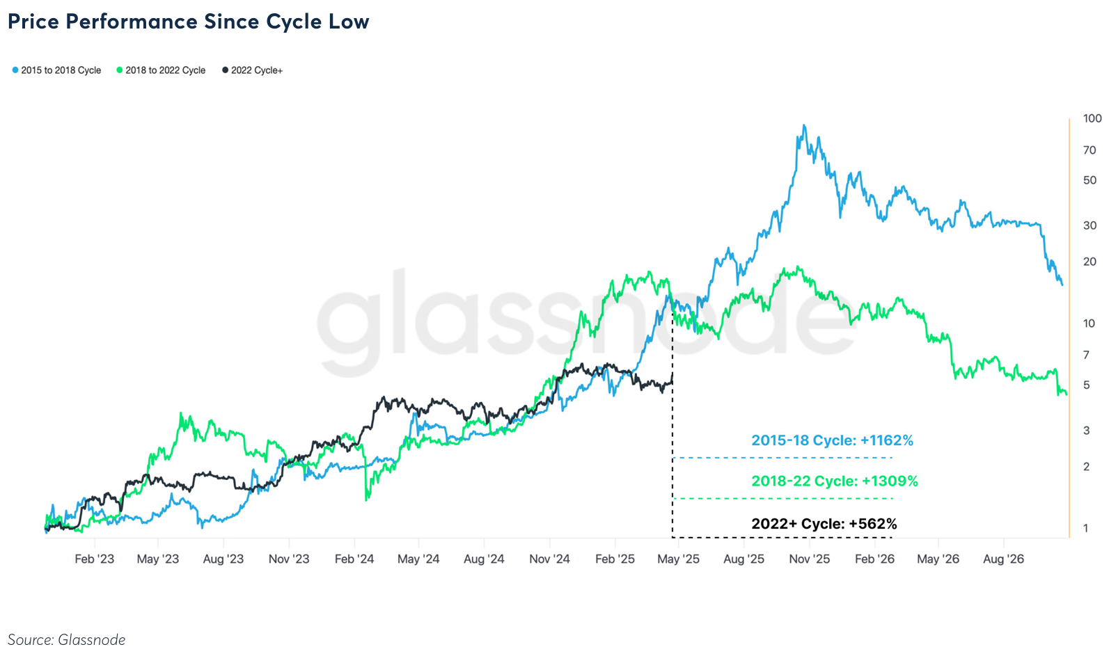 2022년 11월 사이클 저점 이후 현재까지 $472억의 신규 자본이 유입되었으며, 이는 현재 강세장을 뒷받침하는 핵심 동력입니다.