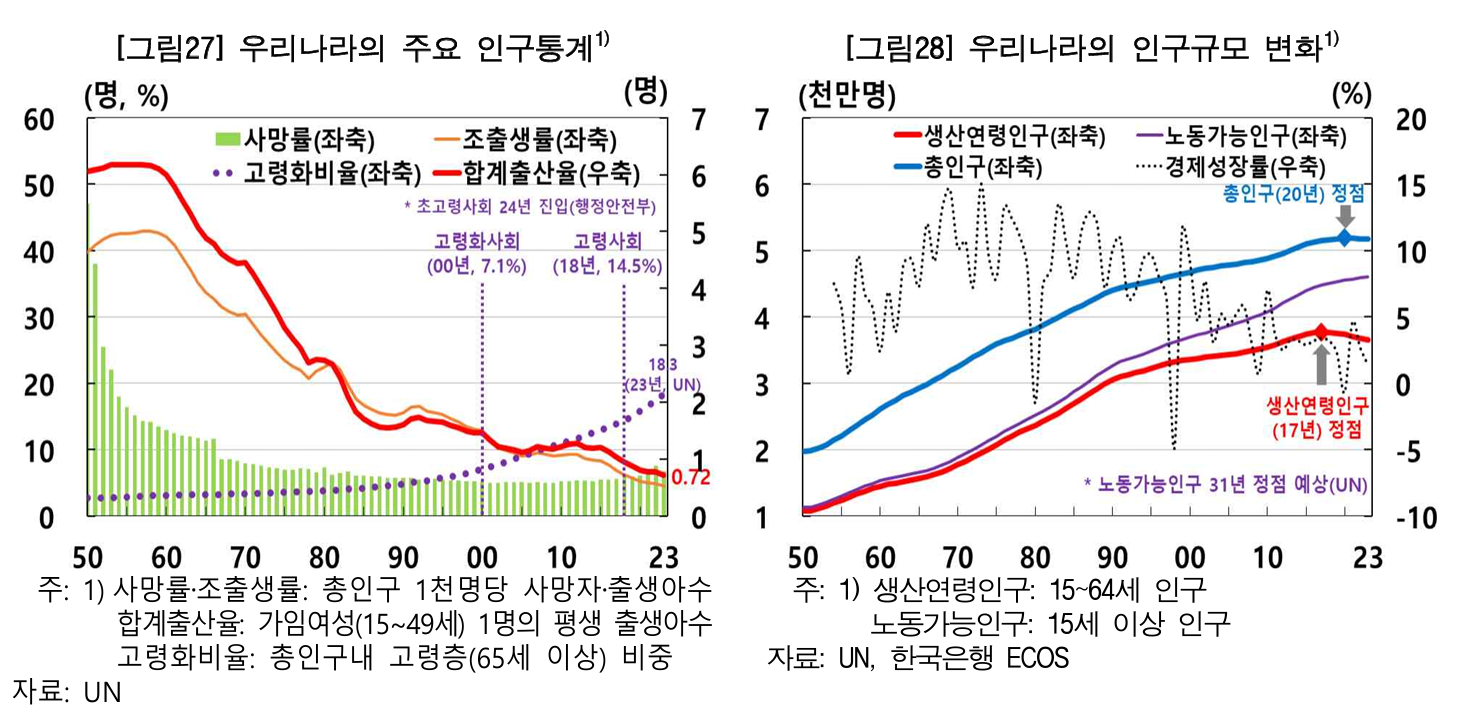 | 생산연령인구 정점 | 1995년 | 2017년 |