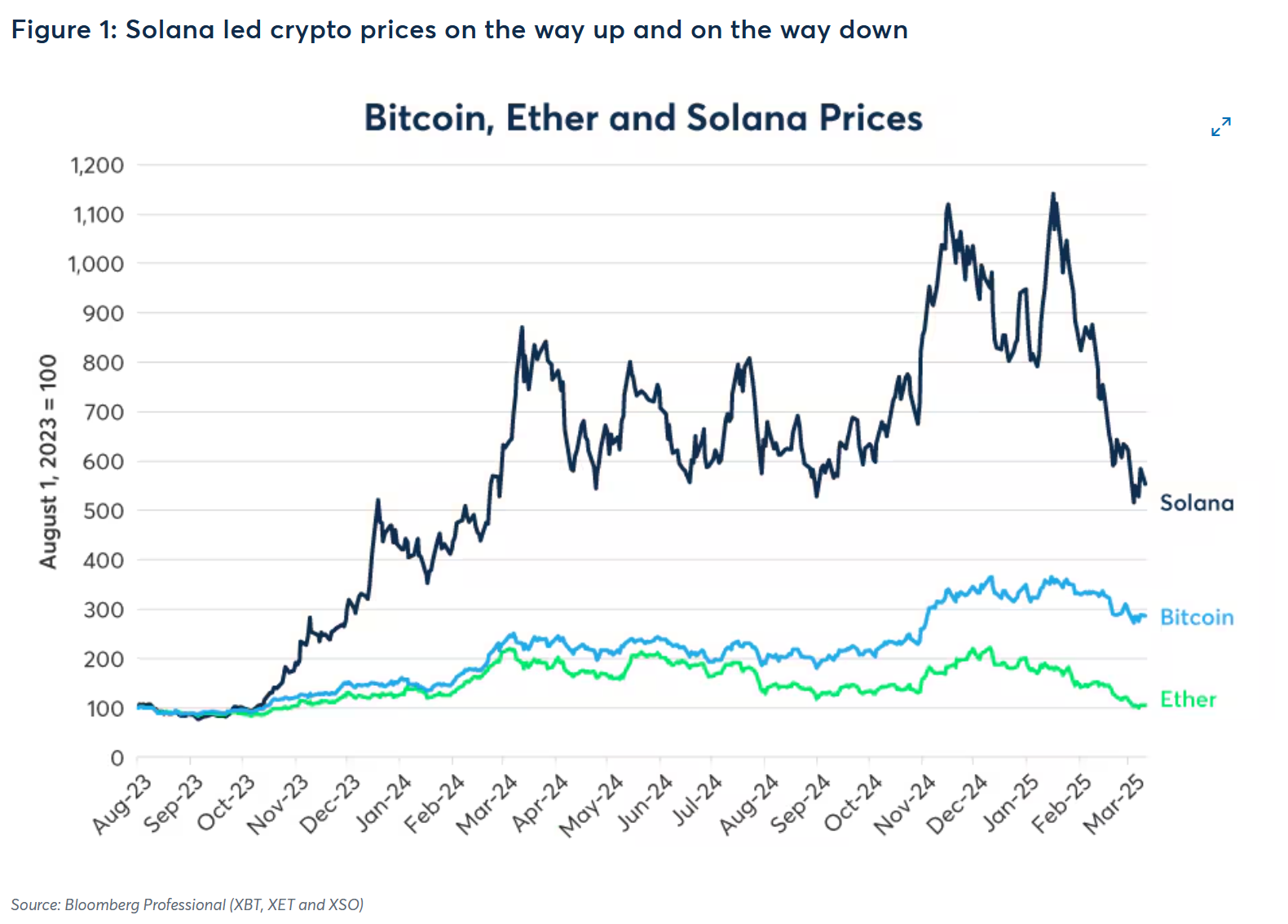 3월 초 미국 정부가 전략적 비트코인 보유고와 디지털 자산 비축고 창설을 위한 행정명령을 발표하는 등 규제 환경이 개선되는 좋은 소식이 있었음에도 불구하고, 비트코인, 이더리움, 솔라나(SOL)의 가격이 급격히 하락했습니다^1.