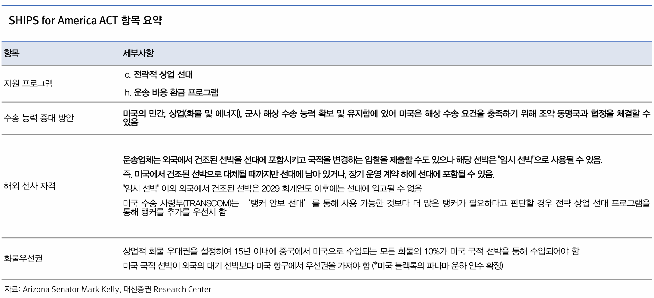 - 2029년부터 외국 건조 선박의 미국 선대 편입 제한