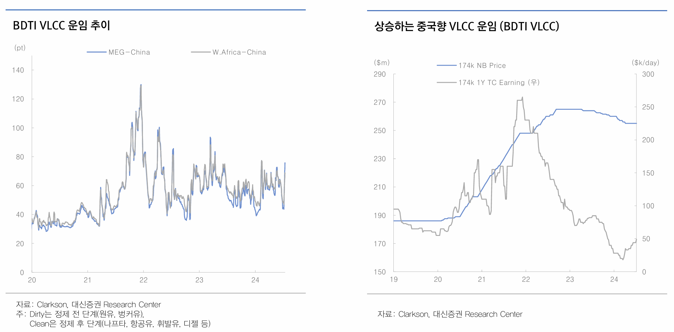 - BDTI VLCC (초대형 원유운반선 운임 지표)가 75.8포인트로 전년 대비 44% 급등