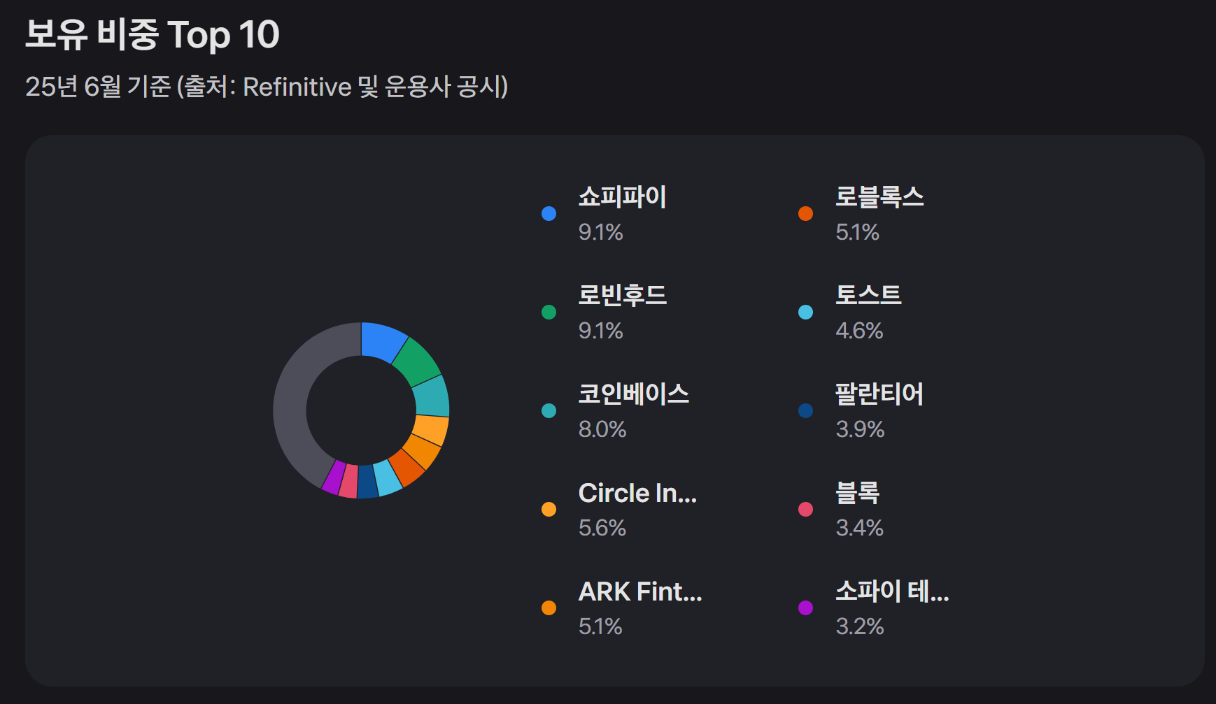 1년 수익률은 약 54.13%로 2위를 기록했습니다^3. 이는 모바일 결제와 암호화폐 시장의 회복세가 반영된 결과예요^4. 예를 들어, 스퀘어나 코인베이스 같은 holdings(보유 종목)가 강세를 보였죠.
