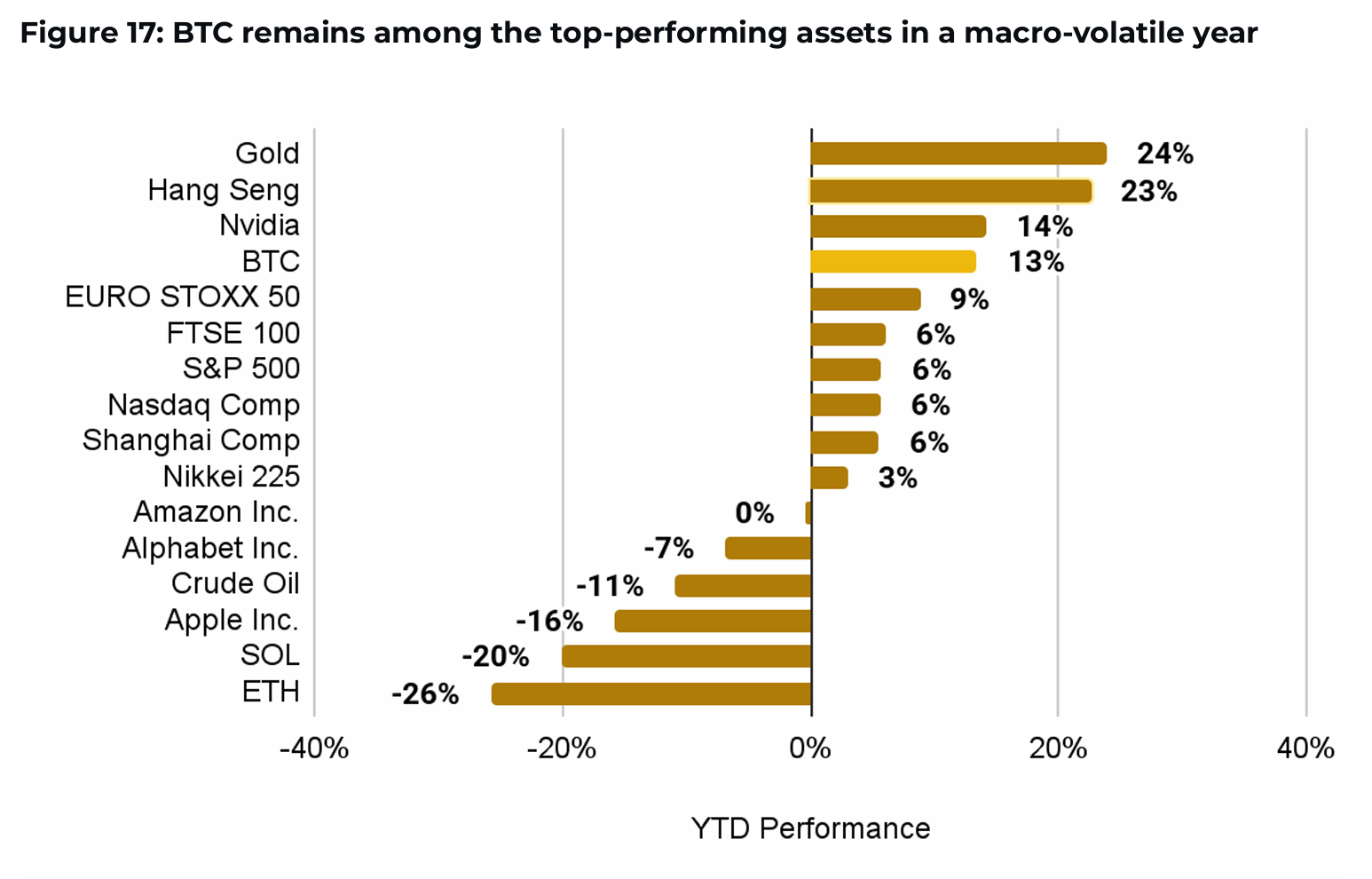 비트코인은 2025년 상반기에 13% 수익률을 기록하며 대부분의 전통 자산을 앞질렀습니다.