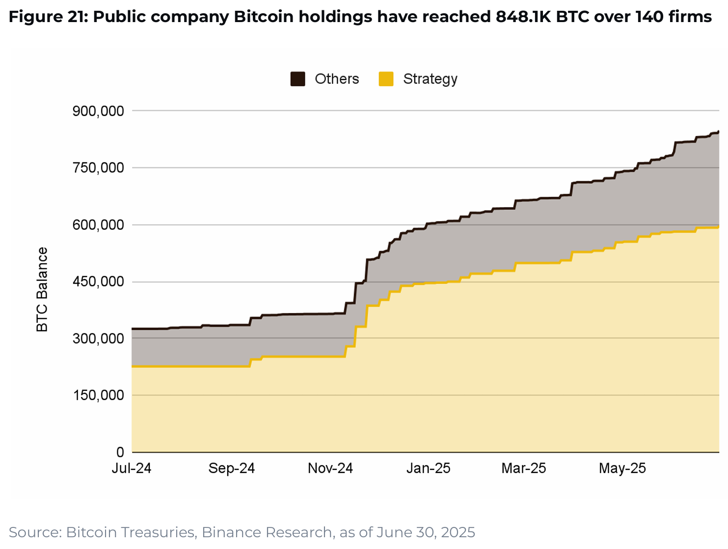 기업들의 비트코인 채택이 급증했습니다. 140개 이상의 상장 기업이 총 84만 8,100 BTC를 보유 중이며, 이는 전년 대비 2배 이상입니다. 이는 인플레이션 헤지와 자본 효율성을 위한 움직임입니다.