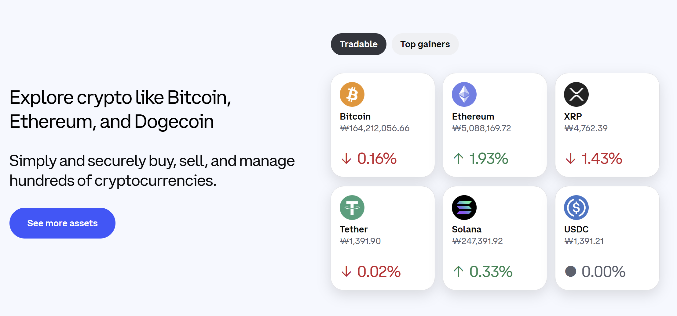 - 코인베이스 거래소(Coinbase Exchange): 개인 및 기관 투자자를 위한 기본 플랫폼으로, 비트코인, 이더리움 등 100개 이상의 암호화폐를 거래할 수 있습니다. 수익 구조의 70% 이상을 차지하며, 거래량 기반 수수료(평균 0.5%)가 핵심입니다^1.