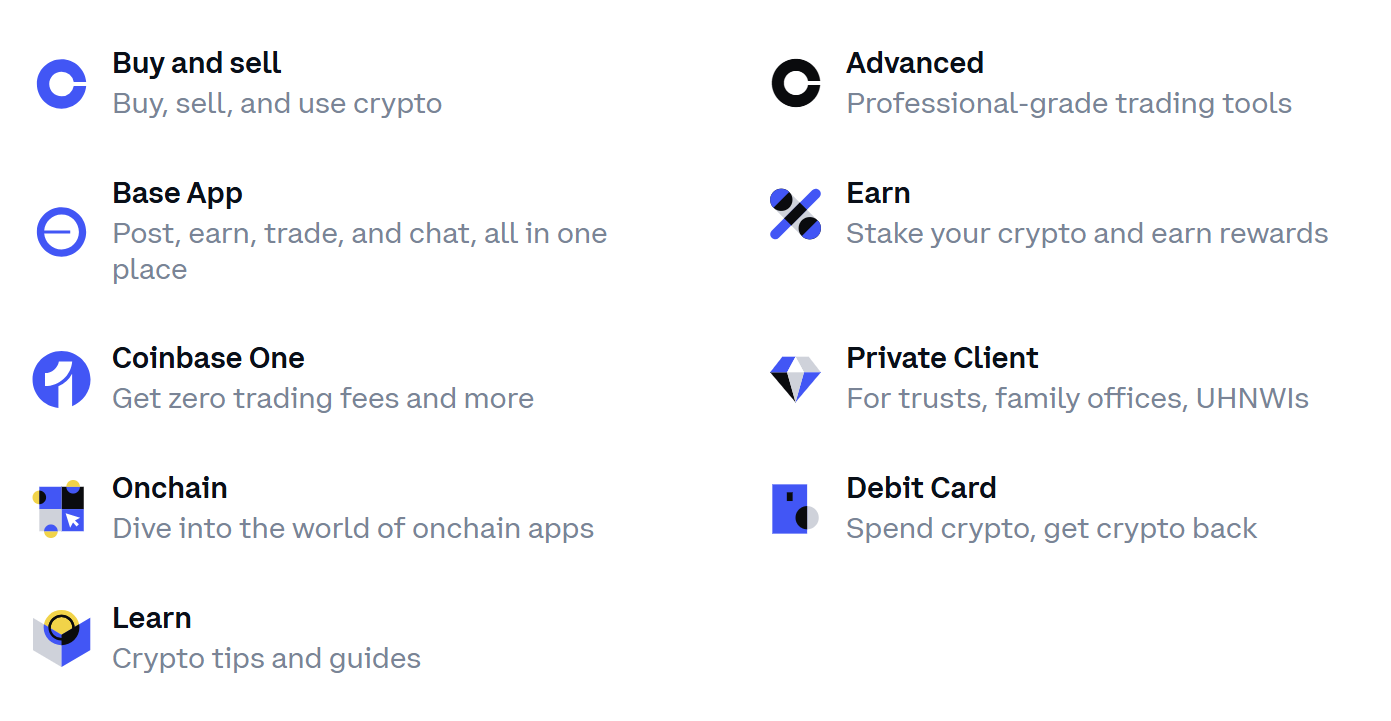 - 코인베이스 프라임(Coinbase Prime): 기관 투자자 전용으로, 보관, 대출, 파생상품 거래를 제공합니다. 2024년 거래 수익이 16억 달러로 급증했습니다^3.