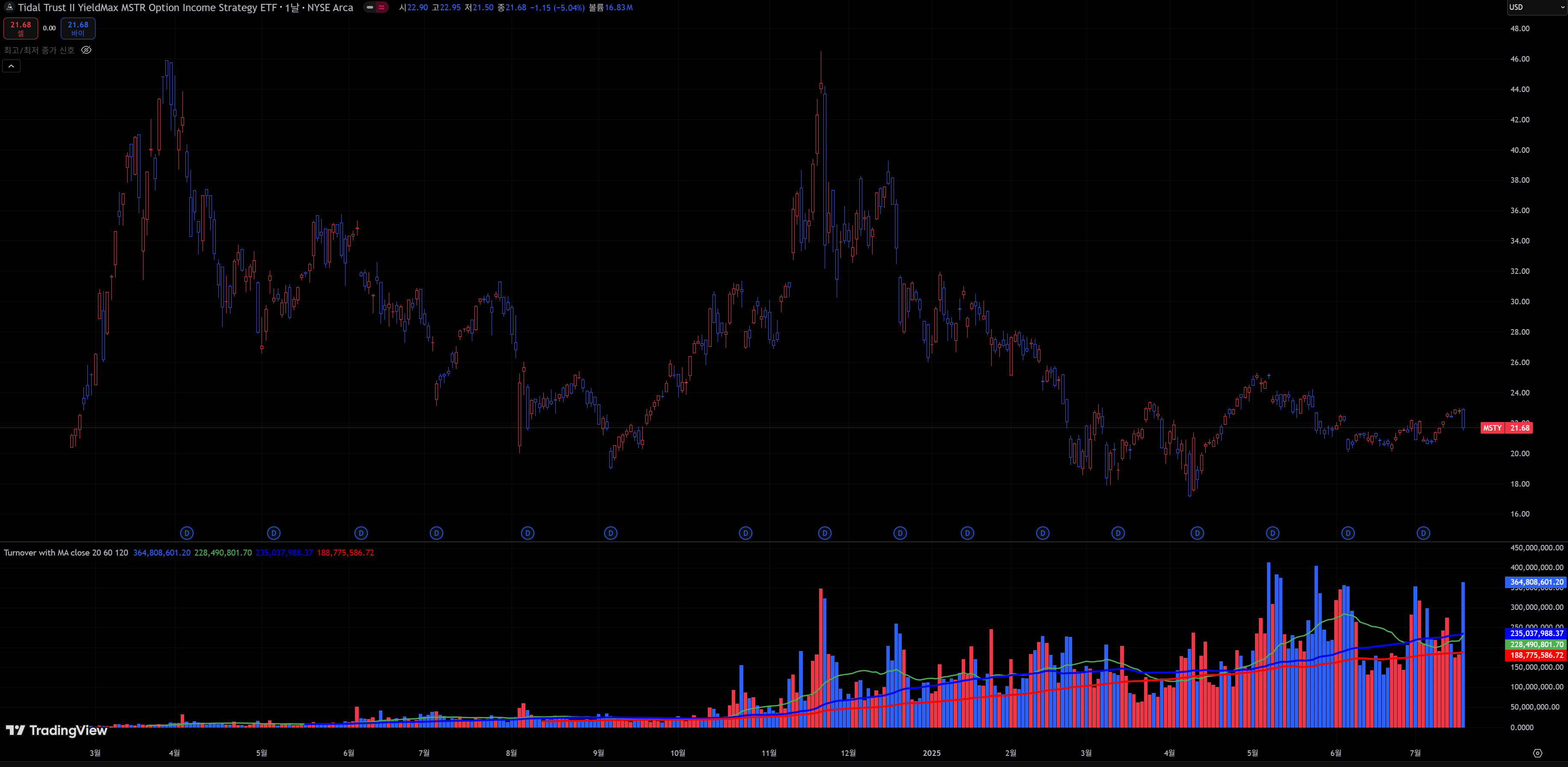 오늘은 고배당 ETF, 특히 YieldMax 시리즈(MSTY, TSLY 등)에 대해 이야기해보려 합니다