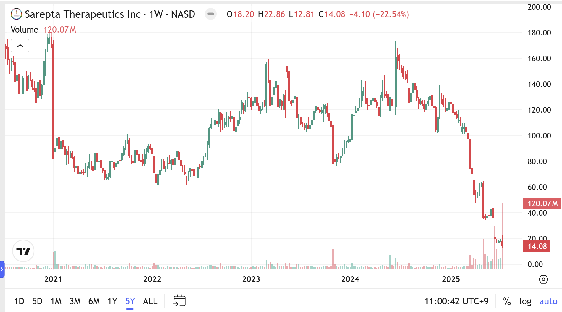 대안 투자 제안: DMD 치료제 시장의 성장성을 활용하고 싶다면, Sarepta의 경쟁사이거나 더 넓은 희귀질환 치료제 ETF 투자를 권장합니다.