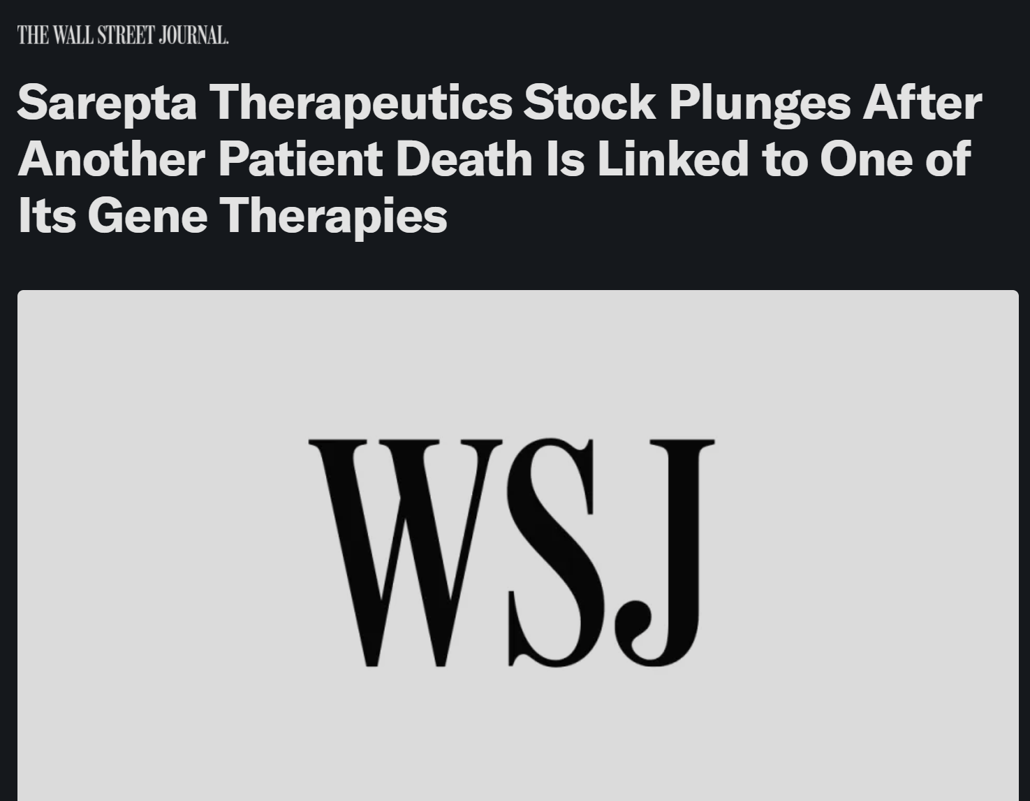 현재 Sarepta의 가치평가는 ELEVIDYS의 안전성 문제 해결 여부에 따라 극단적으로 달라집니다