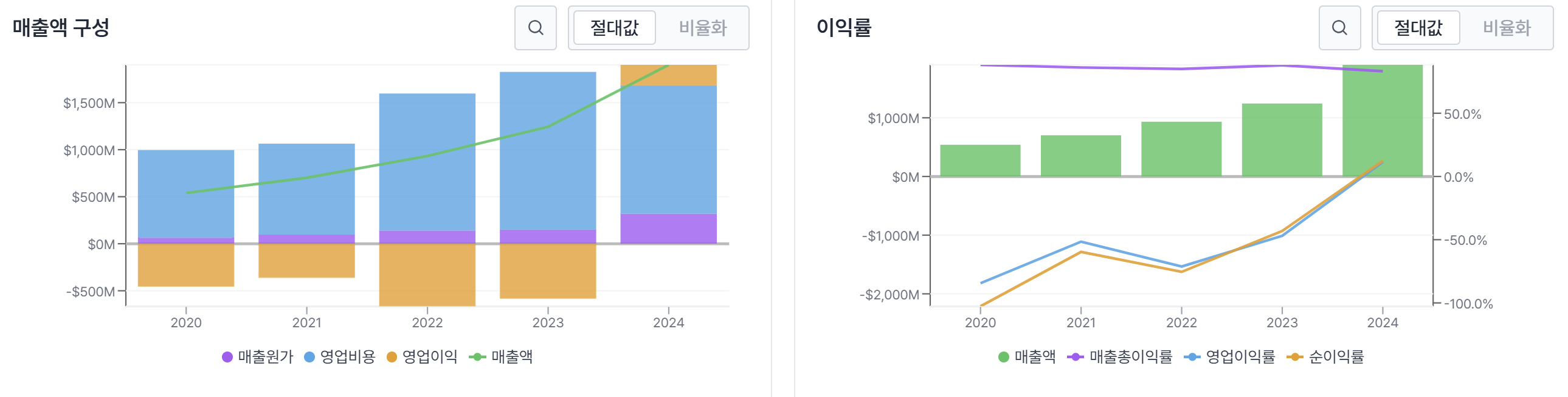 - 영업현금흐름: -$206M (여전히 적자이지만 개선 추세)