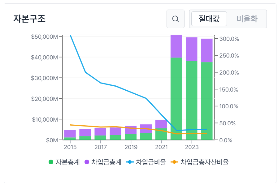 설비투자는 상대적으로 적은 수준($1.2억)으로, 자산 경량화된 사업 모델의 특징을 보여줍니다.