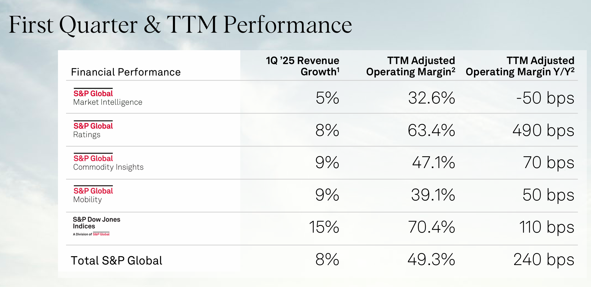 S&P Global의 수익 구조는 5개 주요 사업부문으로 구성되어 있습니다^5^8