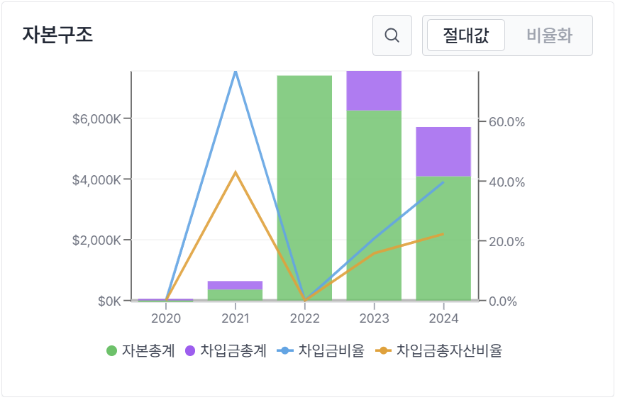 유동성 리스크: 현금및현금성자산 49.9만 달러로 상당히 낮은 수준