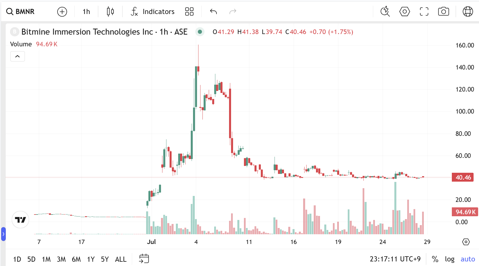 기술적 분석 결과 BMNR 주식은 극도로 높은 변동성을 보이고 있습니다