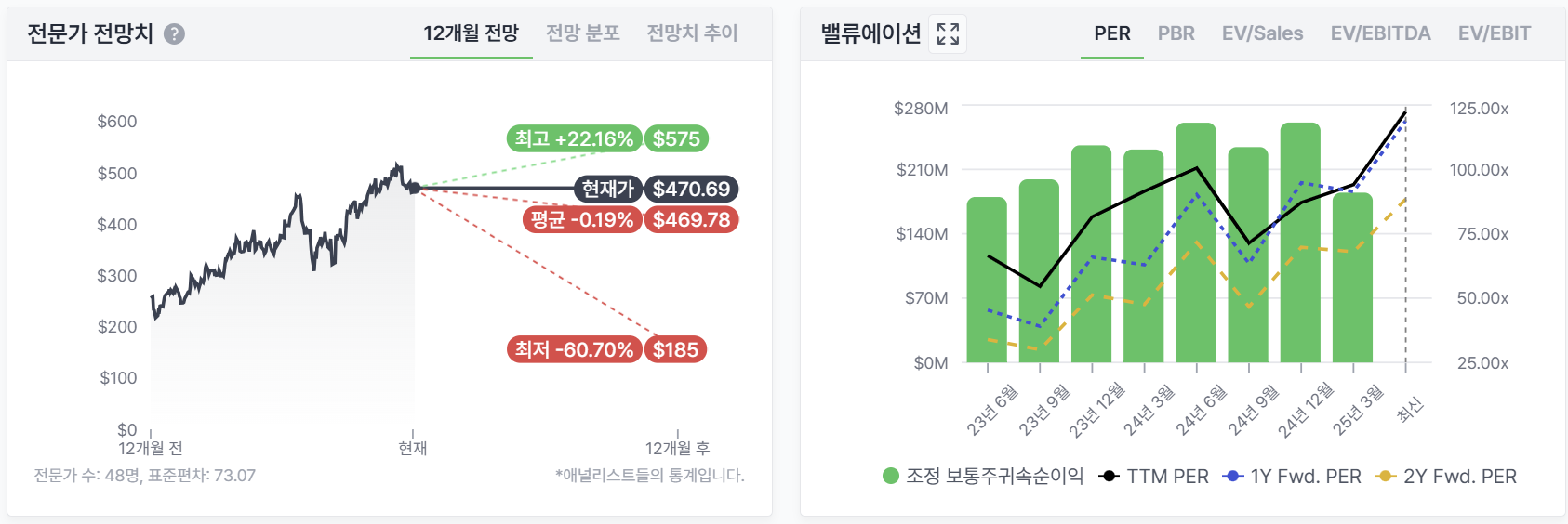 애널리스트 컨센서스: $469 (46명 애널리스트 평균)