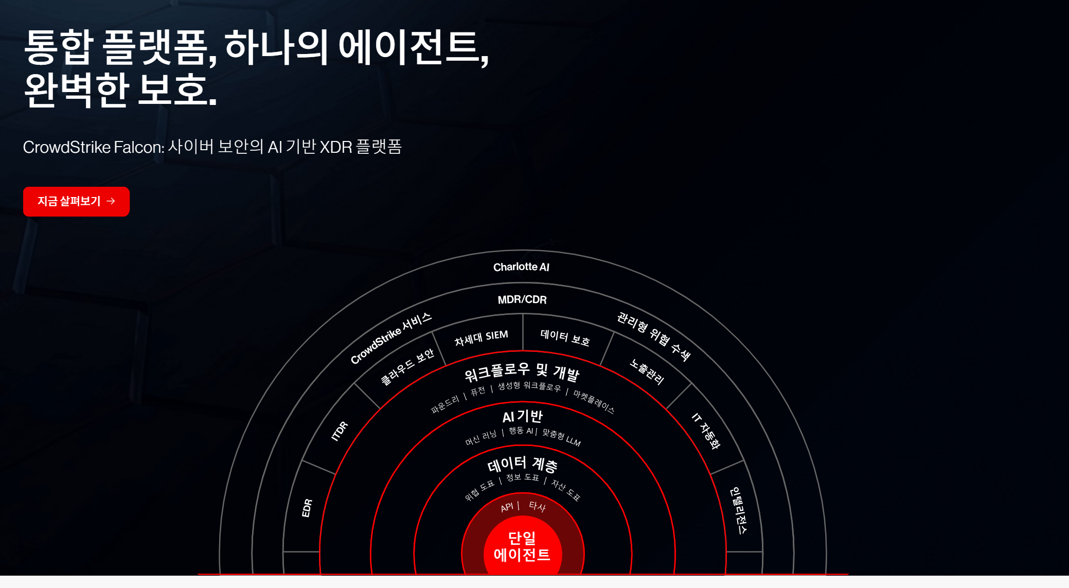 - Falcon 플랫폼: 핵심 제품으로 엔드포인트 보호, 위협 인텔리전스, 사고 대응을 통합한 클라우드 네이티브 솔루션