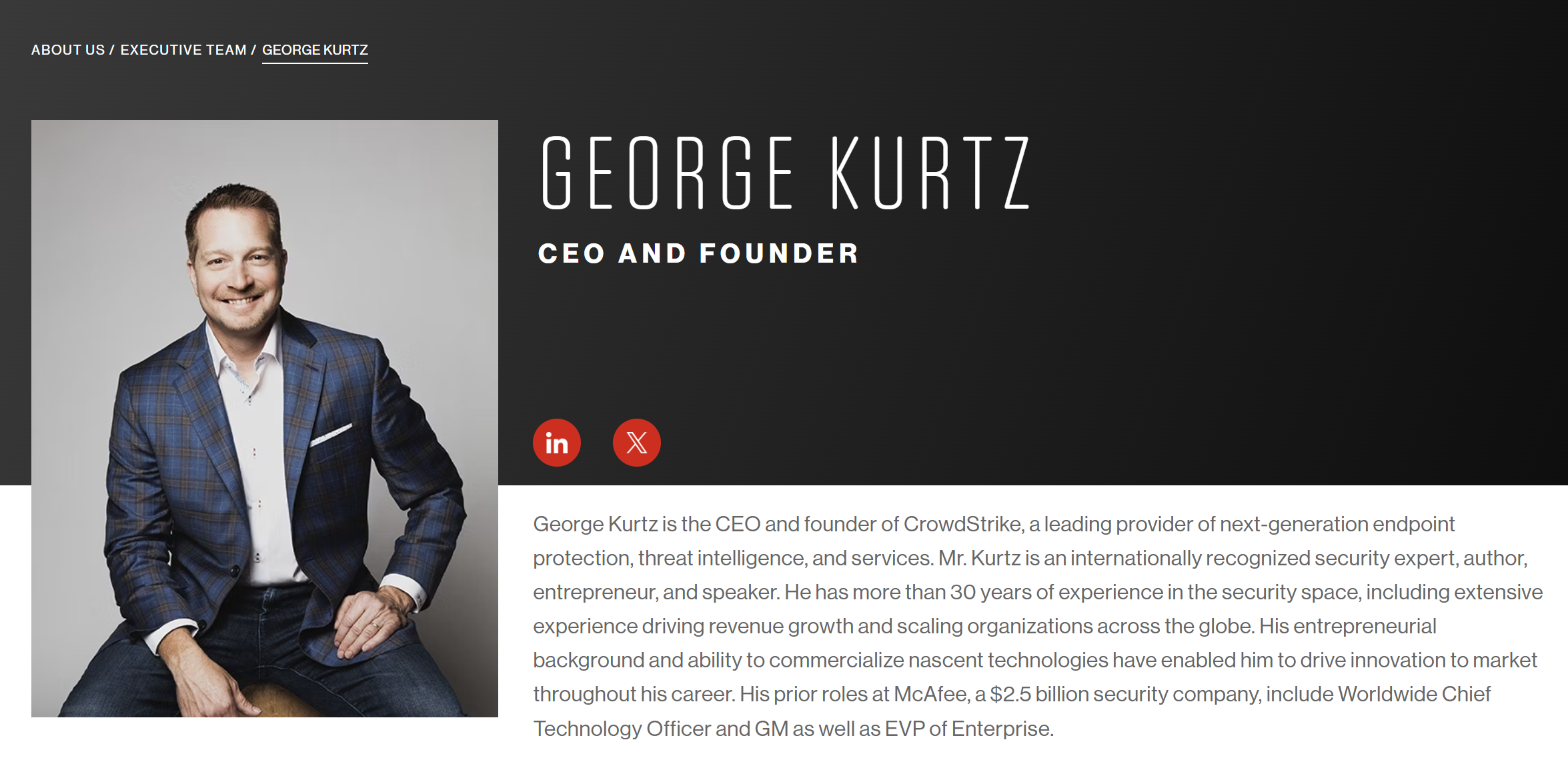 CEO George Kurtz는 사이버보안 업계의 베테랑으로, 2024년 7월 사건 이후 신속한 대응과 투명한 소통으로 리더십을 입증했습니다^15. 동사는 사건 이후 품질 관리 프로세스를 강화하고 고객과의 관계 복구에 집중하고 있습니다.