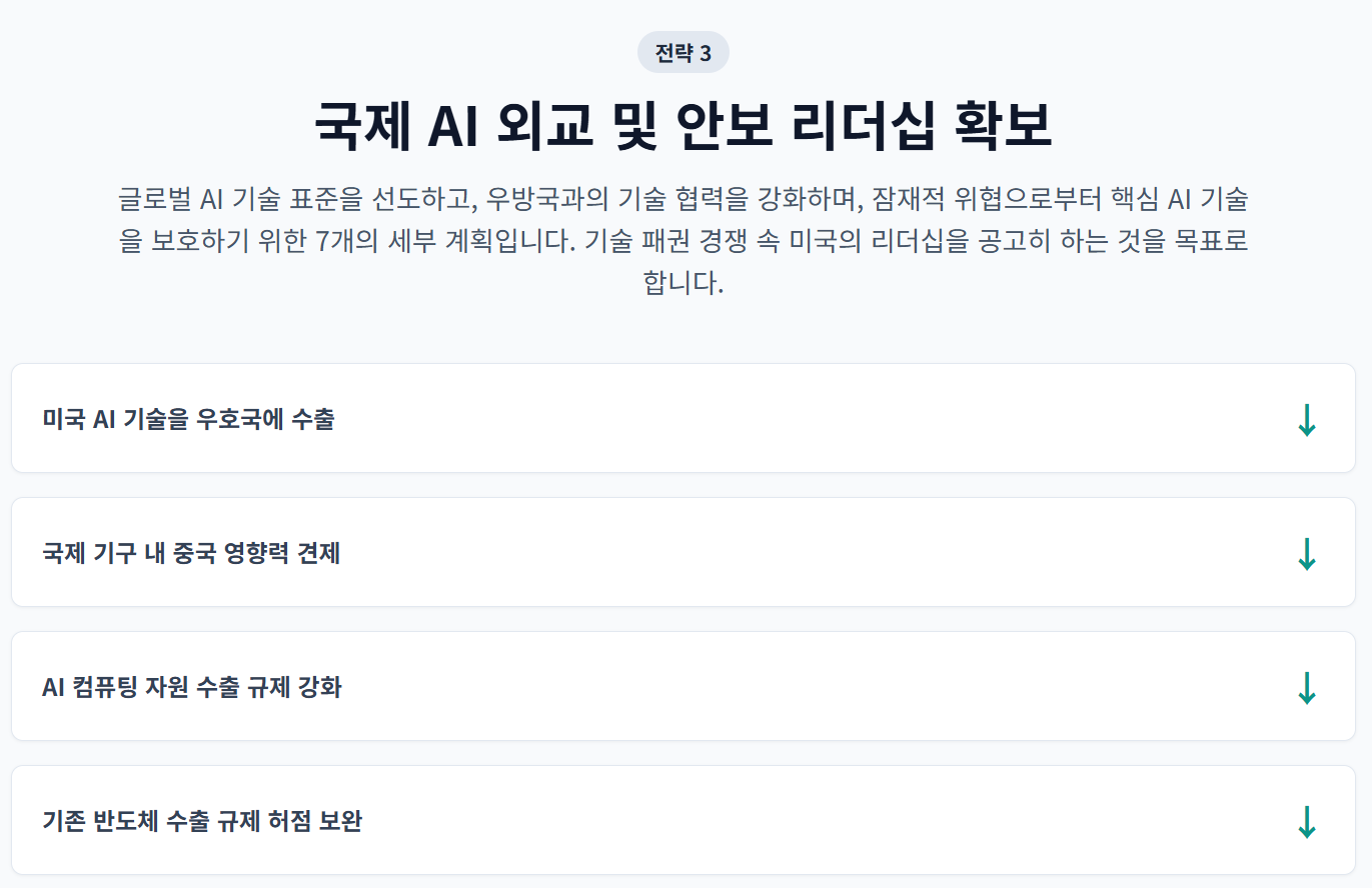 마지막 전략은 미국 AI 기술을 우호국에 수출하고 중국의 영향력을 견제하는 데 초점을 맞췄습니다.