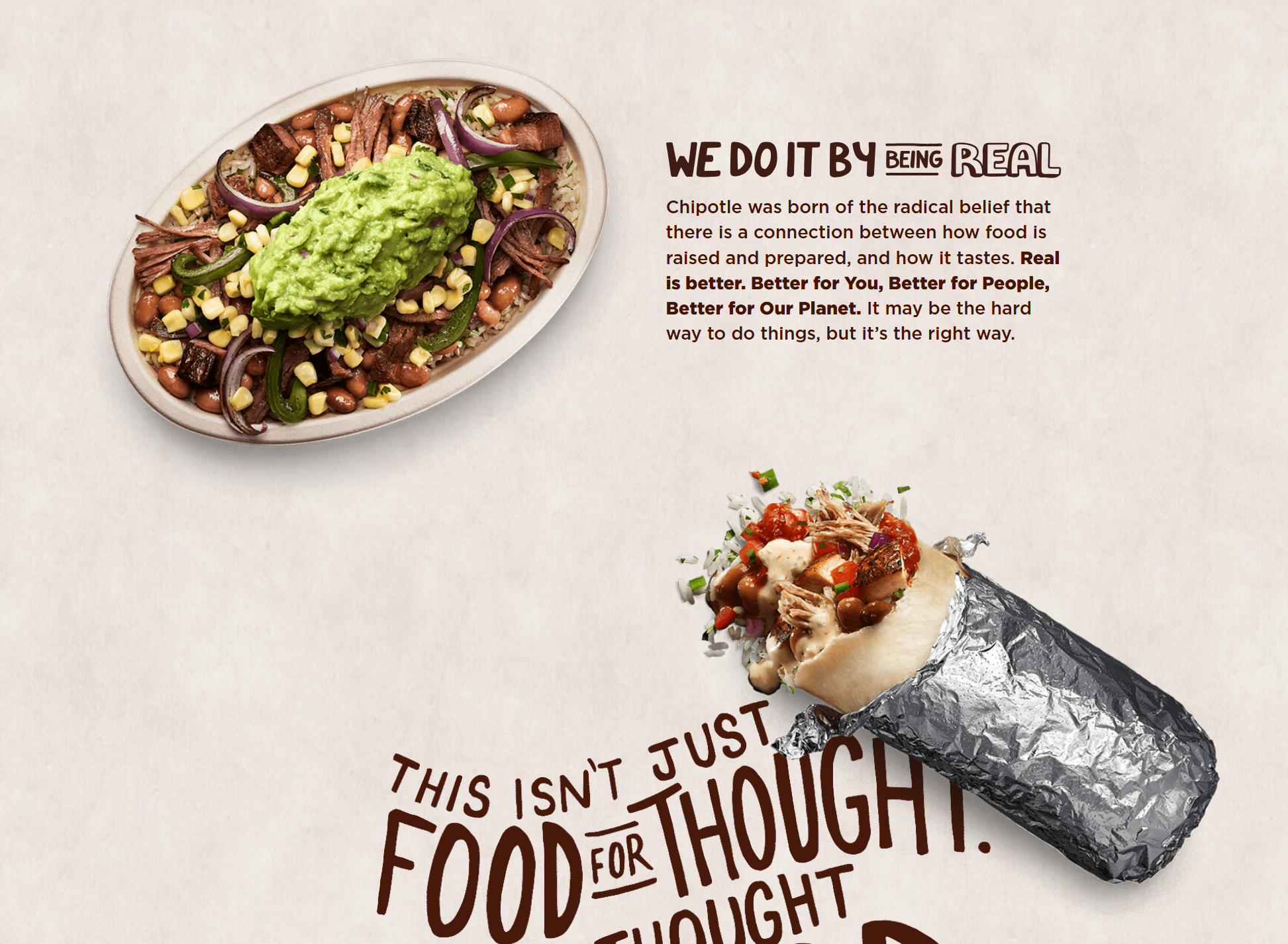 주요 메뉴는 부리토, 타코, 볼, 샐러드 등으로, 고객이 직접 재료를 선택해 맞춤형으로 주문할 수 있는 모델을 강조합니다^1. 품질 높은 재료(지속 가능하고 윤리적으로 공급된 육류, GMO-free 채소 등)와 디지털 주문(모바일 앱, 온라인)을 통해 수익을 창출하며, 2025년 2분기 총 수익은 31억 달러로, 디지털 판매가 전체의 35.5%를 차지했습니다^3.