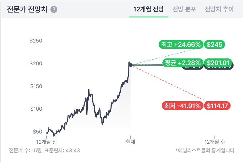 실적 발표 후 여러 애널리스트가 목표주가를 상향 조정했습니다. 예를 들어 JPMorgan Chase는 7월 17일 목표주가를 170달러로 올렸고, 전체 애널리스트 컨센서스는 "Moderate Buy"로, 평균 목표주가 125.83달러입니다. 이는 7월 29~30일 주가 상승(최고 202.41달러)에 기여했으며, Zacks가 "Strong Buy"로 업그레이드한 것도 긍정적 시장 심리를 반영합니다^13^15. - 주요 원인 3: 시장 변동성 및 차익 실현 (부정적 영향, 주가 하락)