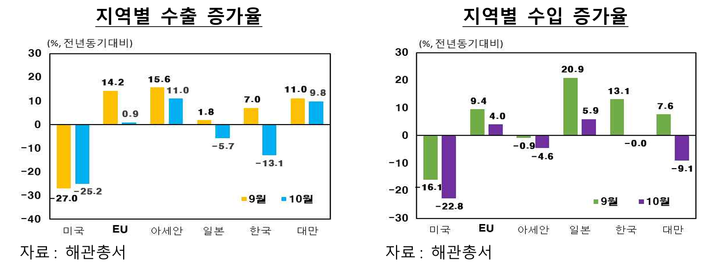 - 미국이랑 사이가 안 좋아서 그런지, 대미 수출이 부진하대요.