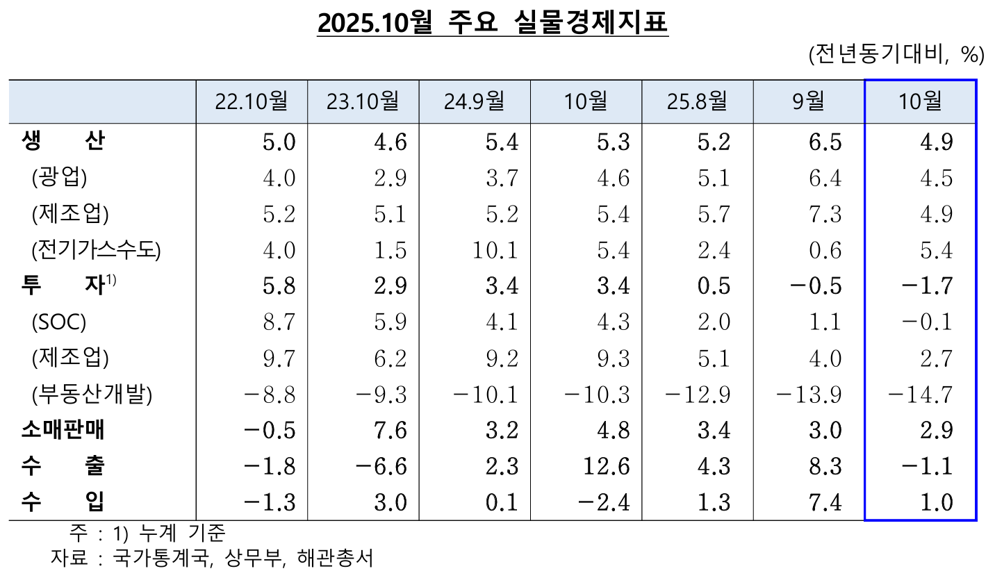 1. 10월 실물경기, "어라? 전부 둔화됐네?"