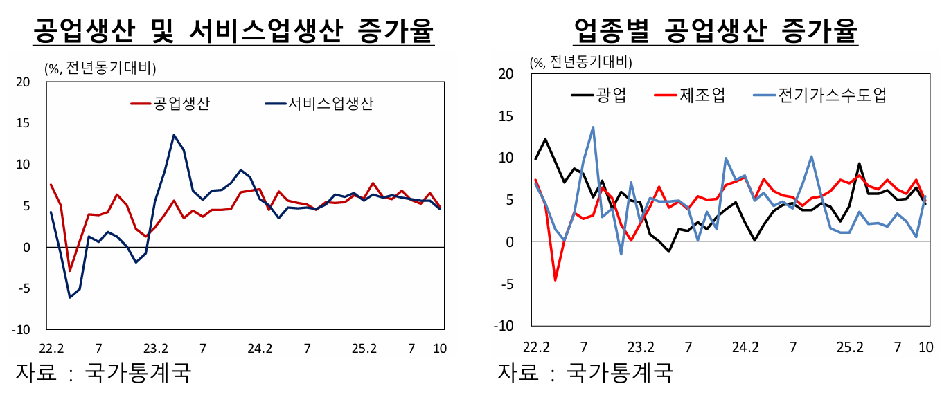 - 공업생산: 9월 6.5% → 10월 4.9%