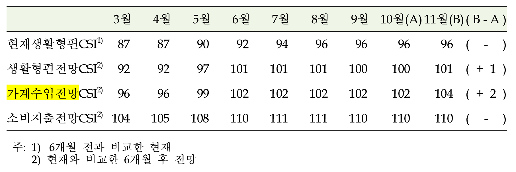 한국은행에서 발표한 따끈따끈한 '11월 소비자동향조사' 결과를 바탕으로 작성한 글입니다
