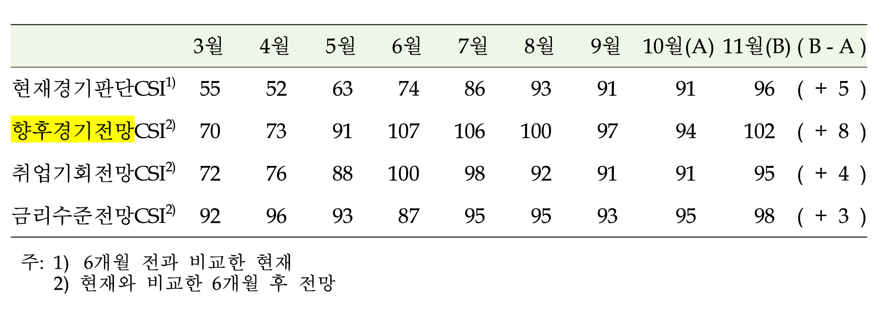 - 향후경기전망CSI: 102 (+8p 급등!!)