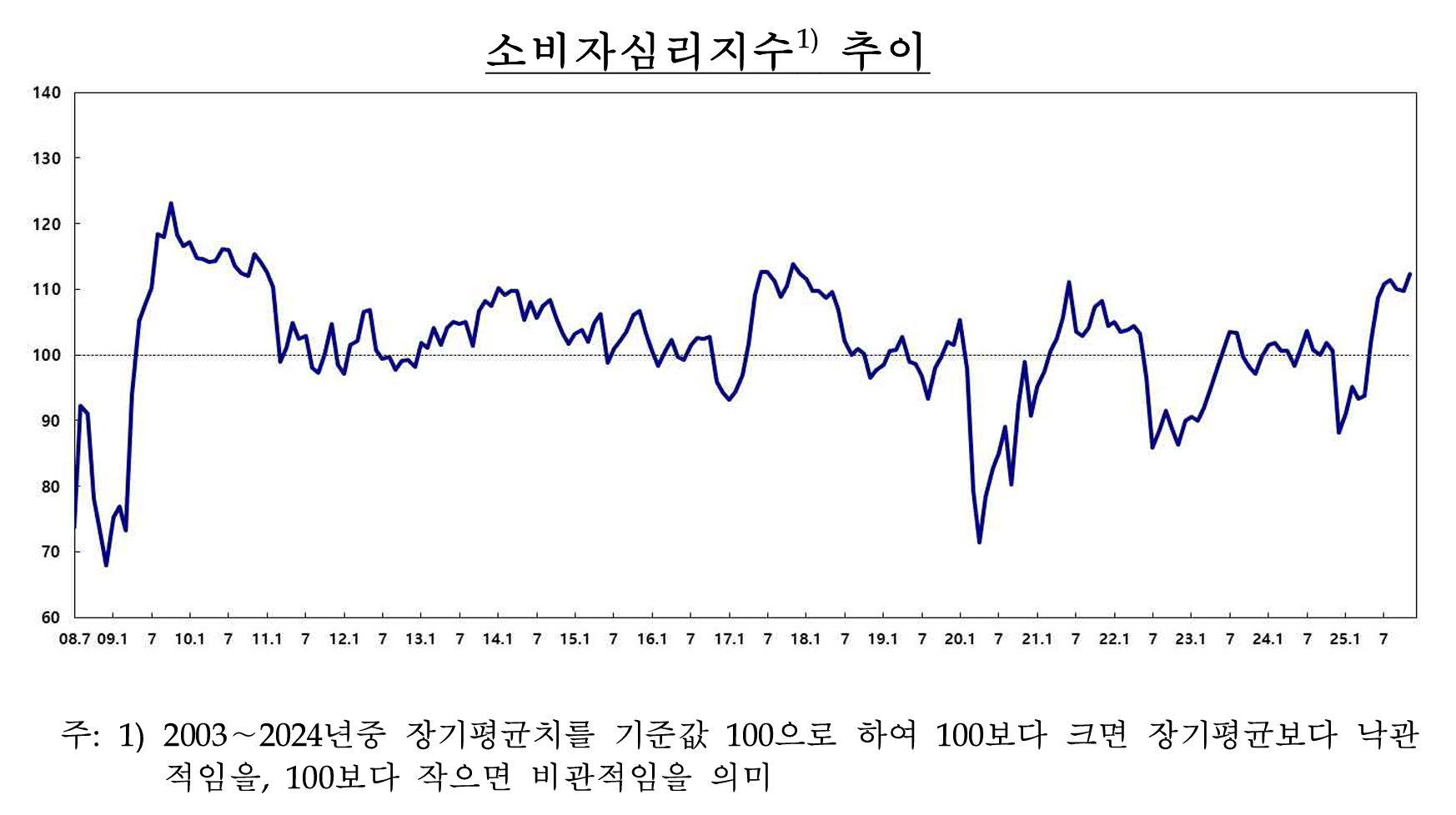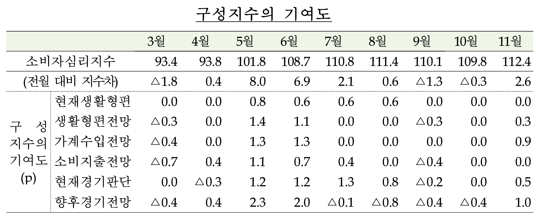 11월 소비자심리지수(CCSI)가 무려 112.4를 기록했습니다