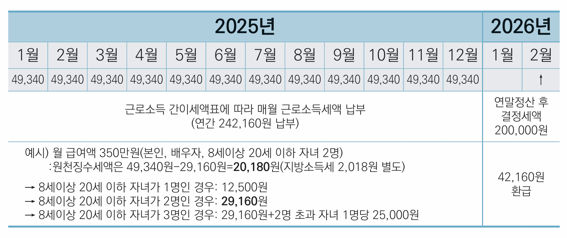 | 환급금 지급 | 2026. 3월 급여일 | 정산 결과에 따라 환급 또는 추가 납부 ^3 |