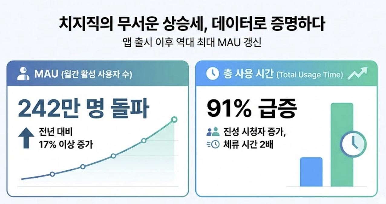 - MAU 242만 명 돌파: 전년 대비 17% 이상 증가하며 꾸준한 우상향 곡선을 그리고 있습니다.
