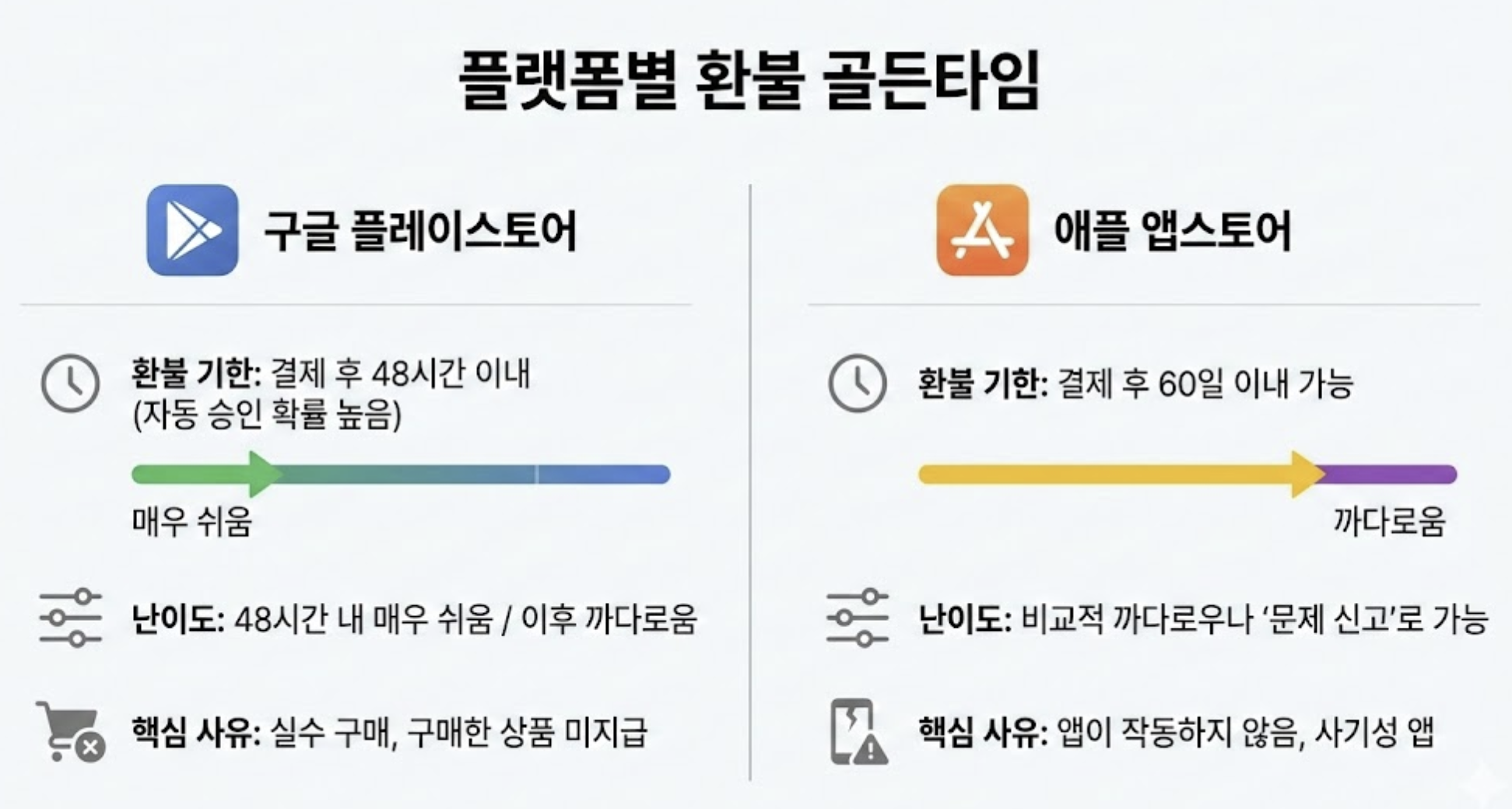 핵심 요약: 플랫폼별 환불 골든타임