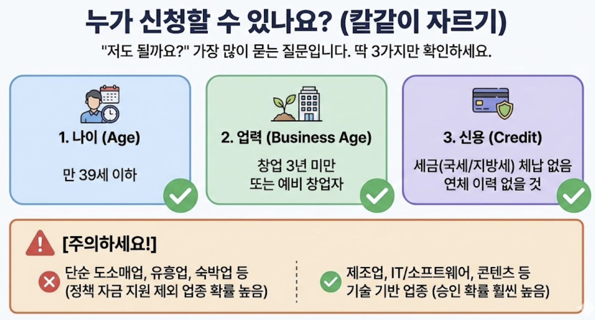 - 업력: 창업 3년 미만의 중소기업 또는 예비 창업자.