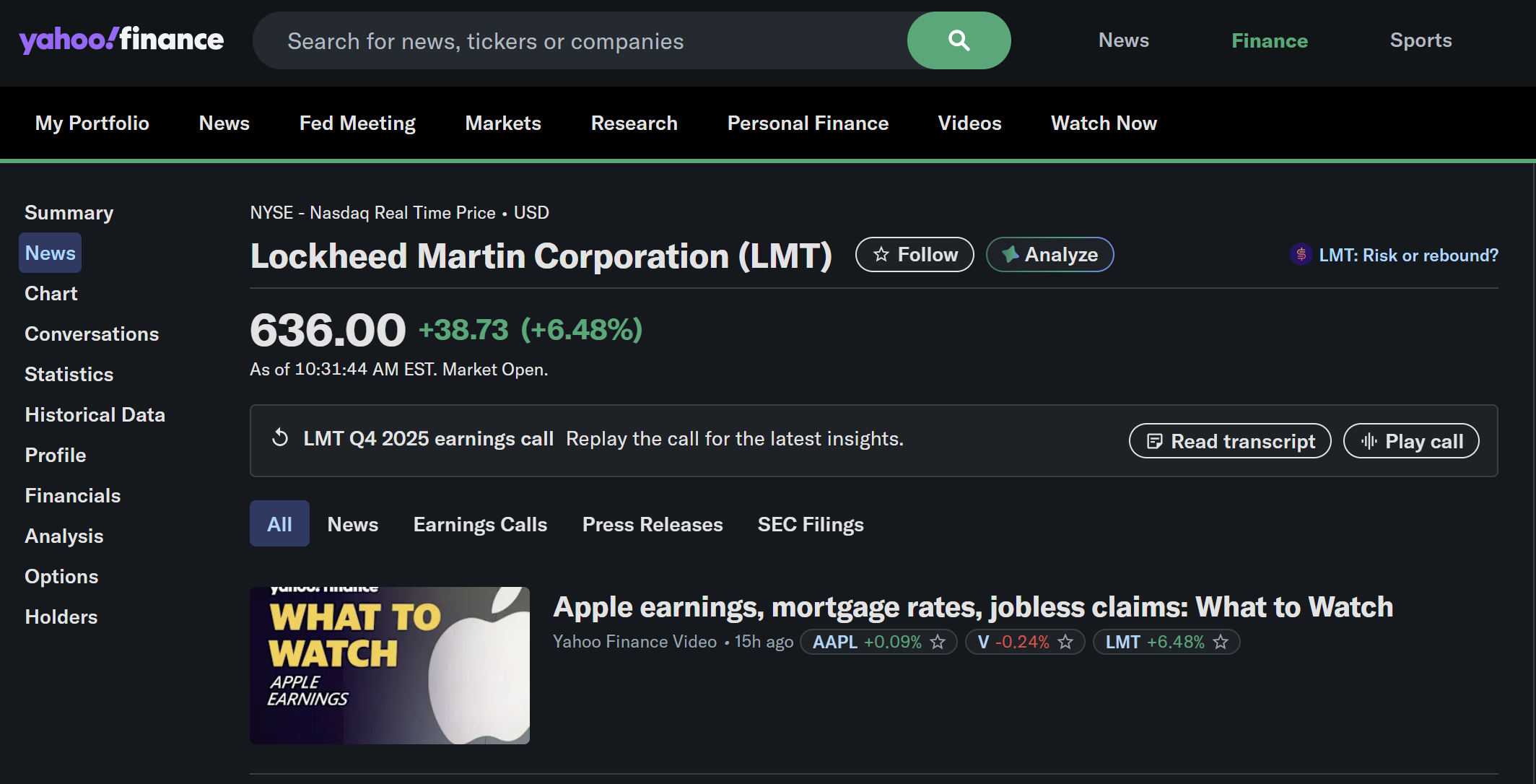Q2: Why is LMT moving up when the market is down?