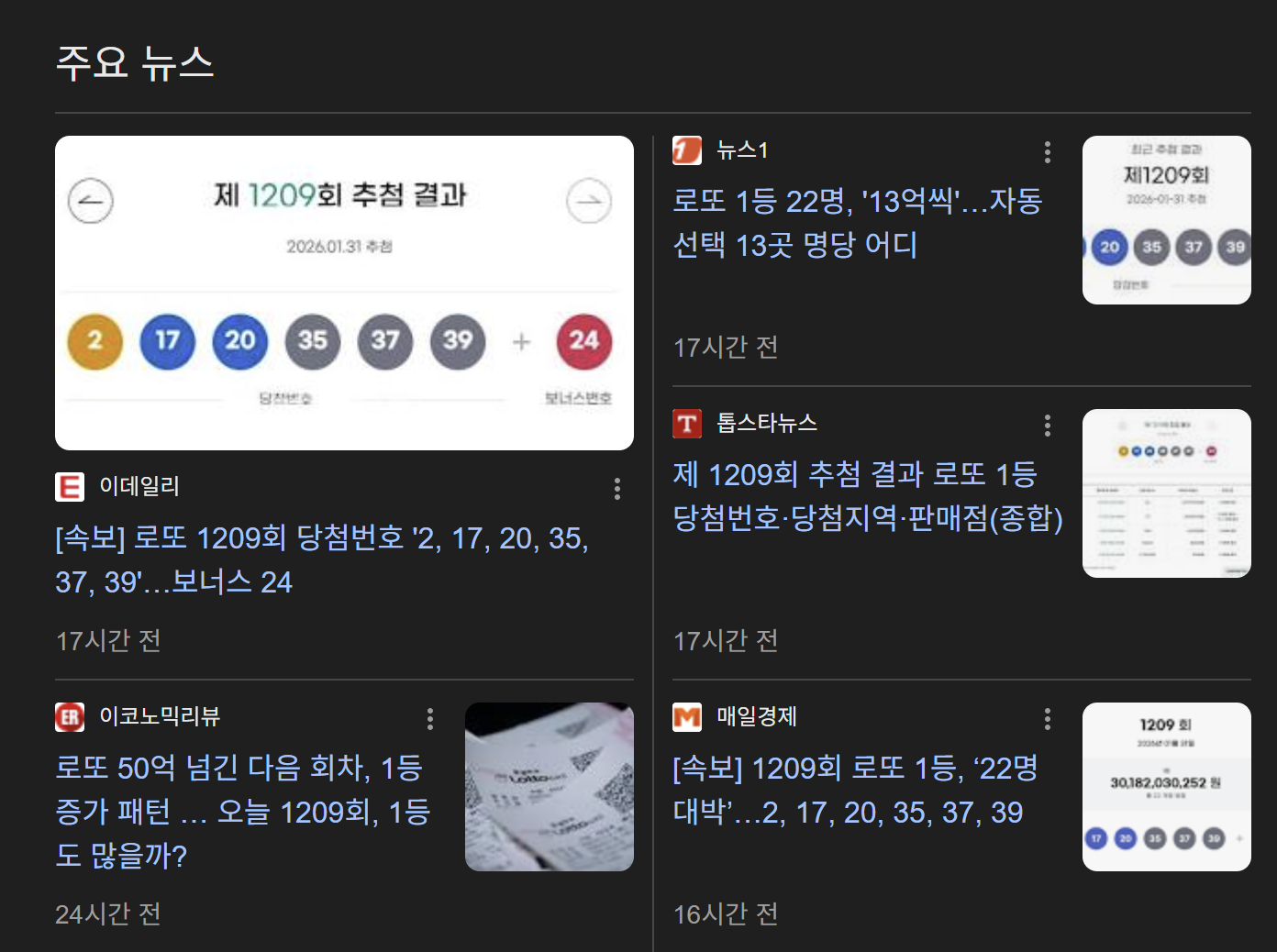 1. 제1209회 로또 당첨번호 (2026.01.31 추첨)