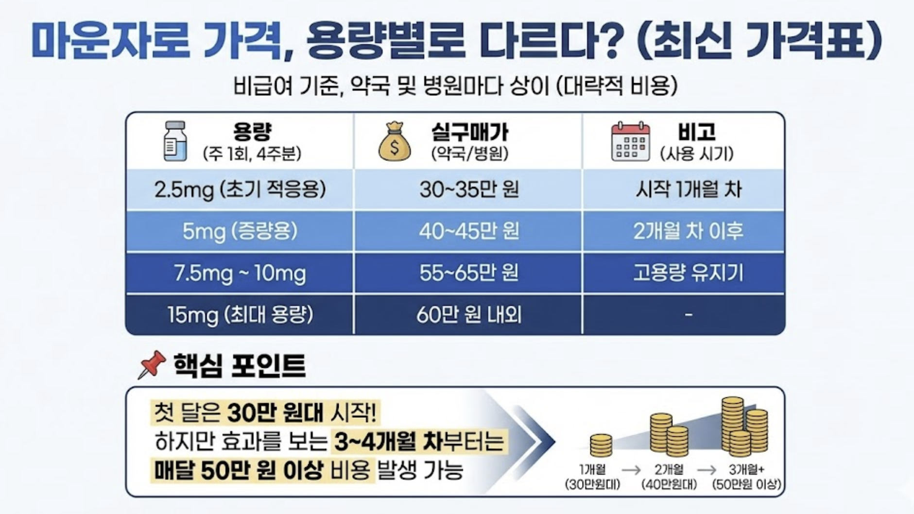 오늘은 2026년 2월 현재 기준, 마운자로의 용량별 정확한 가격과 위고비와의 비용 비교, 그리고 한 달 유지비를 최소화하는 꿀팁까지 속 시원하게 정리해 드립니다.